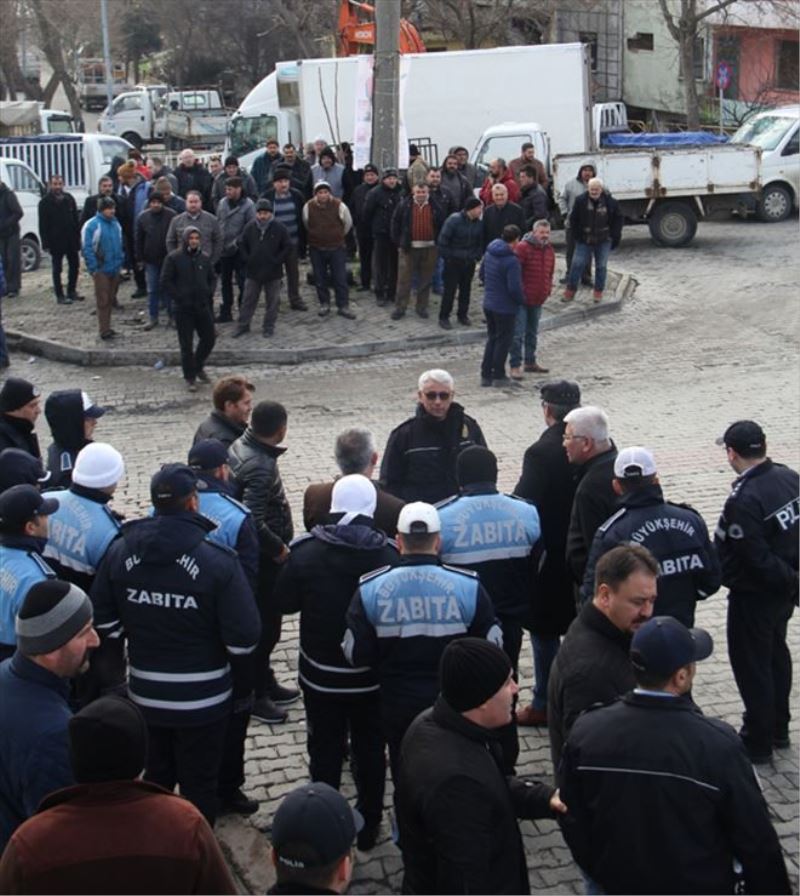 Tekirdağ´da, Pazartesi ve Perşembe pazarının kurulduğu cadde üzerinde belediyenin iş makineleri ile alt yapı çalışmasına izin vermeyen pazarcı esnafları yaklaşık 3 saat yol kapattı....