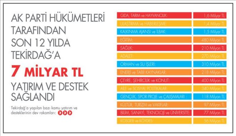 AK PARTİDEN TEKİRDAĞA 7 MİLYARLIK YATIRIM